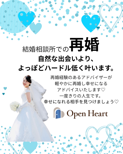 オープンハートさいたま浦和婚活サロンはさいたま市・浦和を中心にその他・東京や首都圏中心の会員様の婚活サポートをしております結婚相談所です。