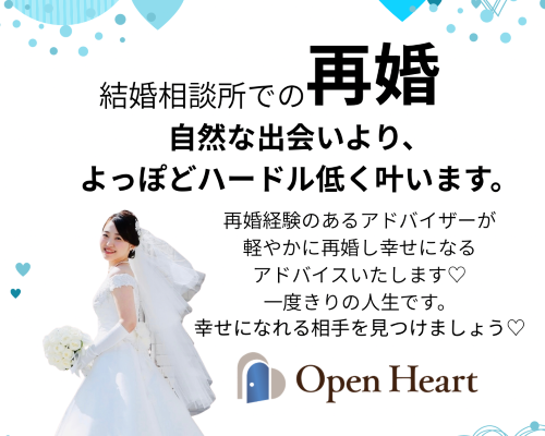オープンハートさいたま浦和婚活サロンはさいたま市・浦和を中心にその他・東京や首都圏中心の会員様の婚活サポートをしております結婚相談所です。